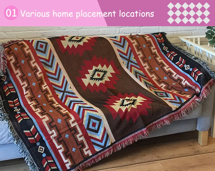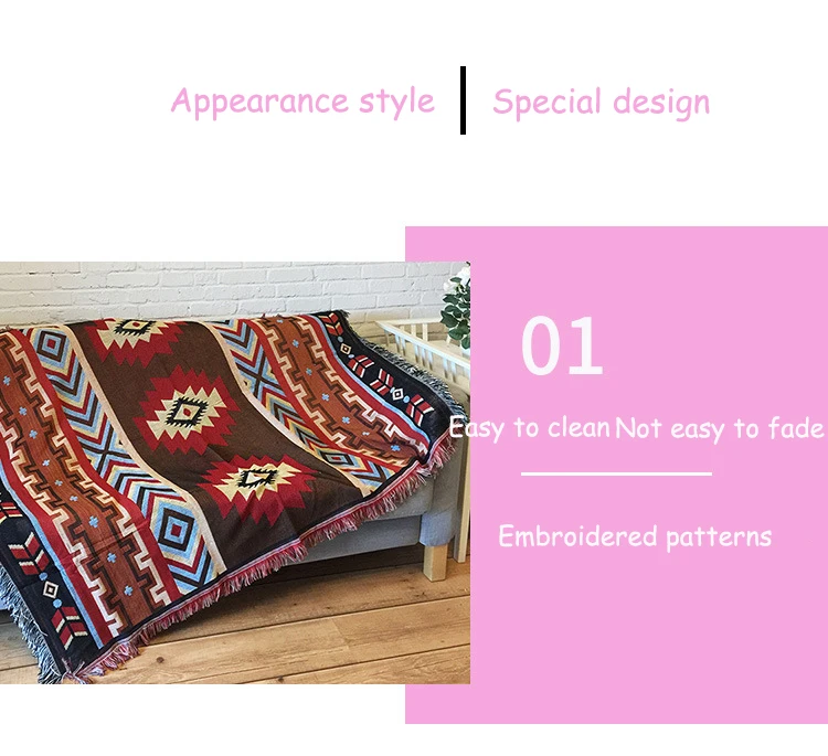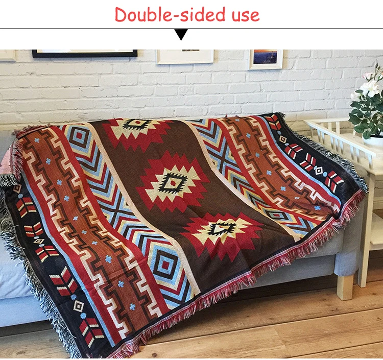 Одеяло в этническом ретро стиле с кисточками и вышивкой