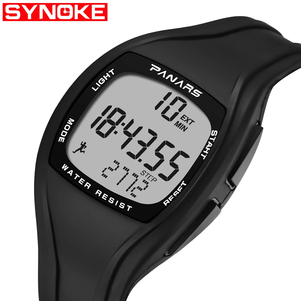 Мужские электронные часы SYNOKE, с шагомером, калорийностью, для фитнеса, спортивные, водонепроницаемые, силиконовые, светодиодные наручные часы