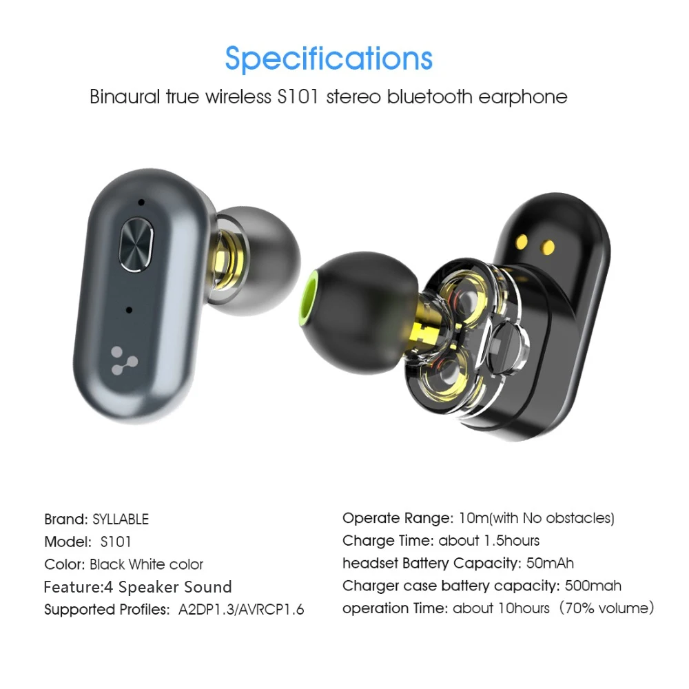 TWS-наушники SYLLABLE S101 с шумоподавлением и регулятором громкости