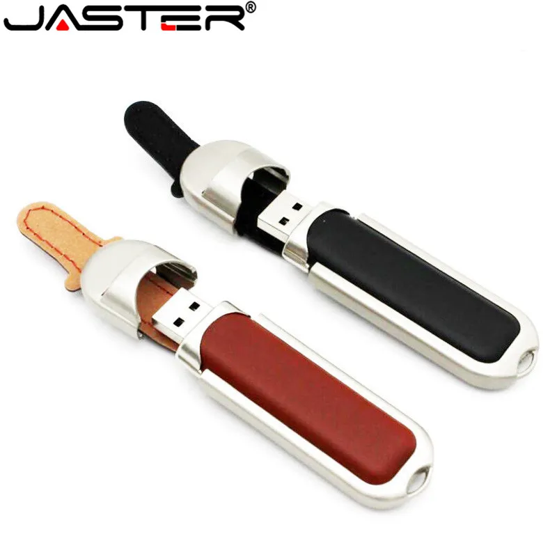 JASTER пользовательская Компания Логотип скорость USB 2,0 кожаная вспышка 4 ГБ 8 ГБ 16 ГБ 32 ГБ 64 Гб металлический Флешка 2,0 интерфейс флэш-память устройство