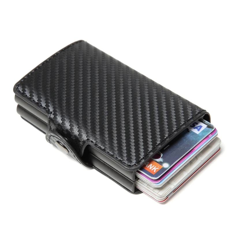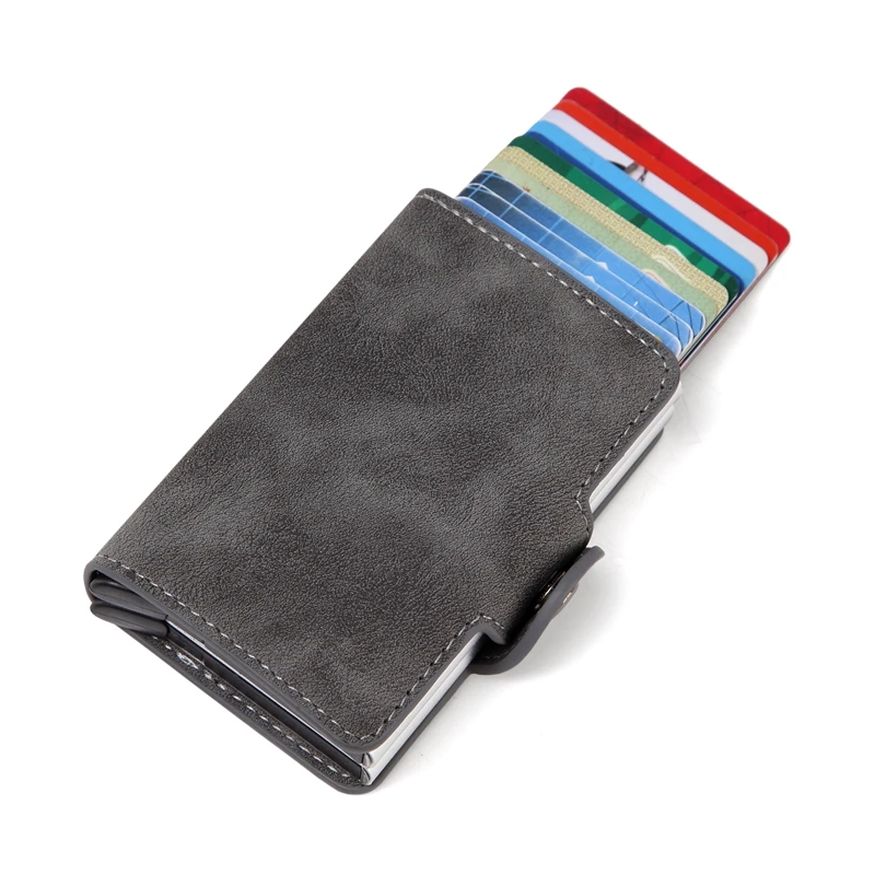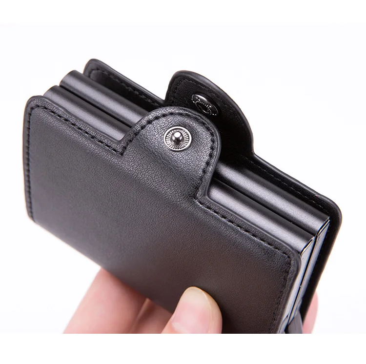 Для мужчин двойной Алюминий кожаный держатель кредитной карты RFID Металл Кошелек автоматические всплывающие Anti-theft wo Для мужчин кошелек Бизнес ID карточки