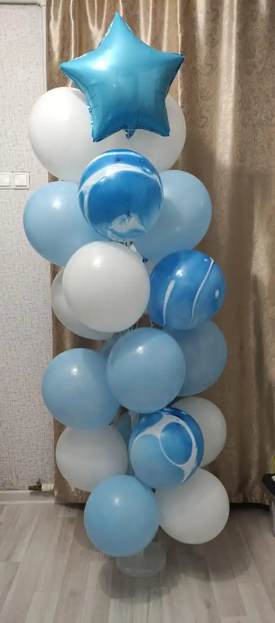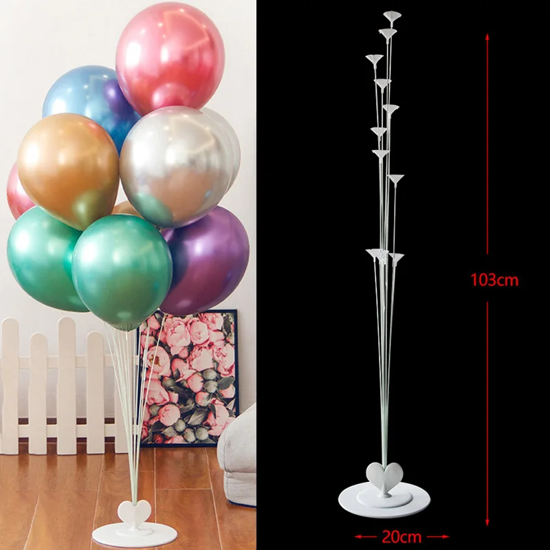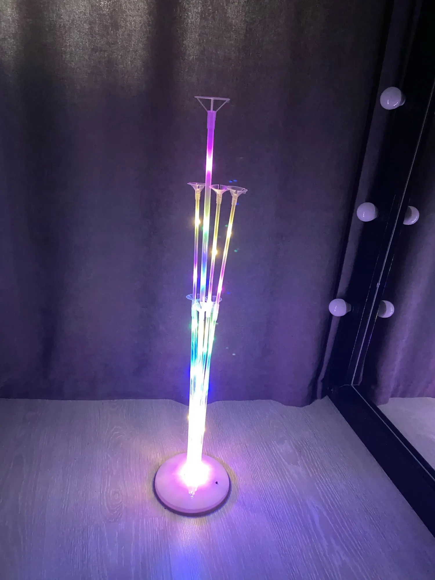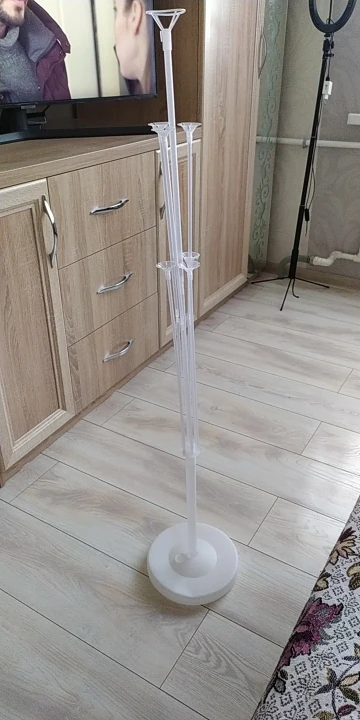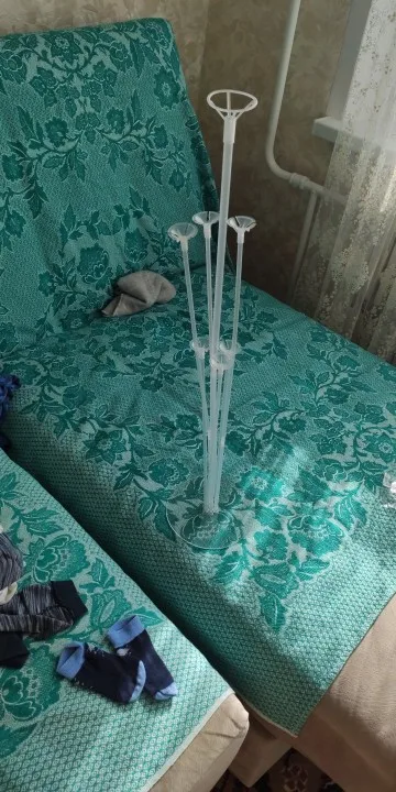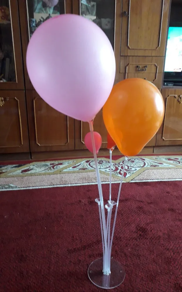 Стойка, отличный вариант оформления шарами настольного или напольного интерьера. Можно регулировать высоту, количество. Устойчивость можно усилить, положив тяжёлые предметы на круглую основу. Спасибо за возможность бюджетно оформить помещение!