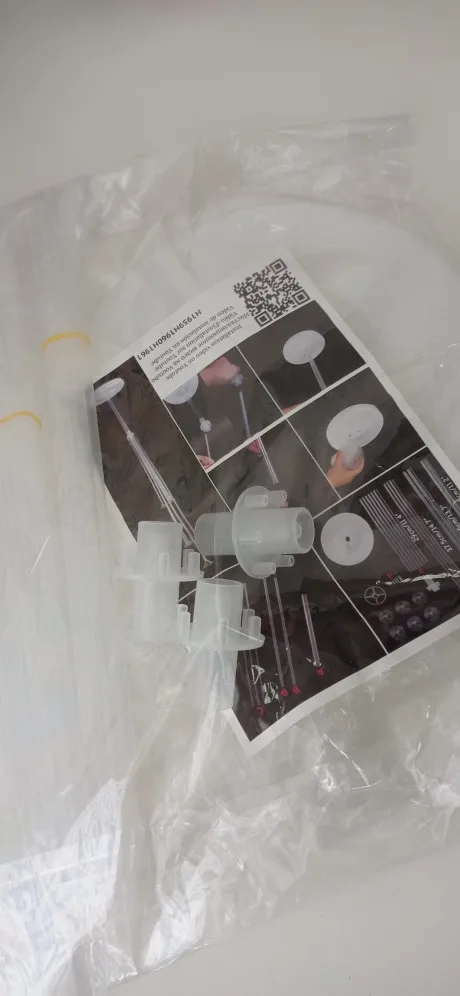 Не хватило одной тоненькой трубочки, а круглая держалка для шарика была одна лишняя. Но это не критично. в остальном всё устроило.