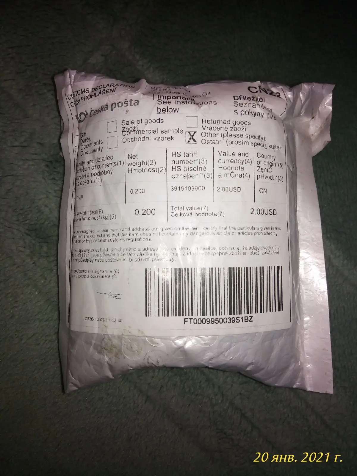 Страна: CZ Color: LS-3 Доставка: Cainiao Super Economy 28.12.2020