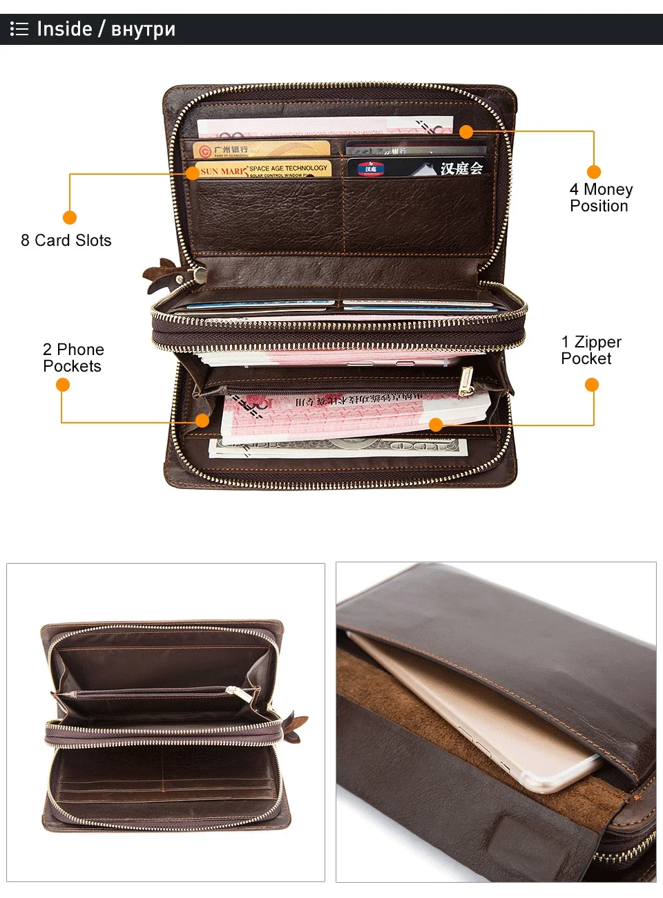 Мужской клатч WESTAL из натуральной кожи, длинный бумажник для монет, кредитных карт, искусственная кожа, кошелек для телефона, 9069