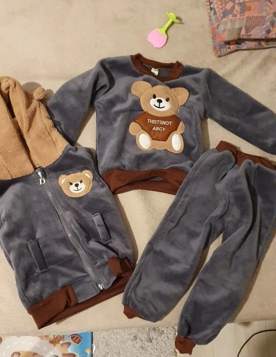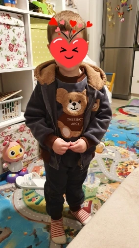 костюмчик красивый ,продавец дней 5 не отправлял ,я даже отменяла заказ, но прибыл в Харьков как обычно примерно за месяц. ребенку сейчас годик,на весну будет классно ,с небольшим запасом. Если придираться ,то кое где нитки торчат и на попе со швом налажали,но в общем неплохо ,хорошенький.