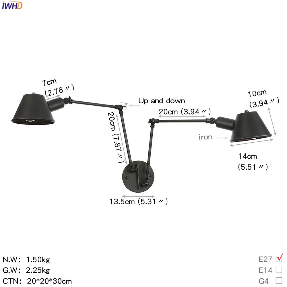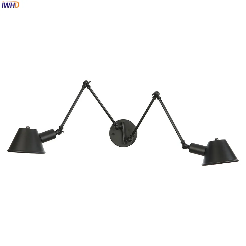 IWHD 2 головки Винтаж Ретро Настенные светильники Спальня Ванная комната Лофт качели настенная лампа с длинным кронштейном Эдисон освещение Lamparas De Pared