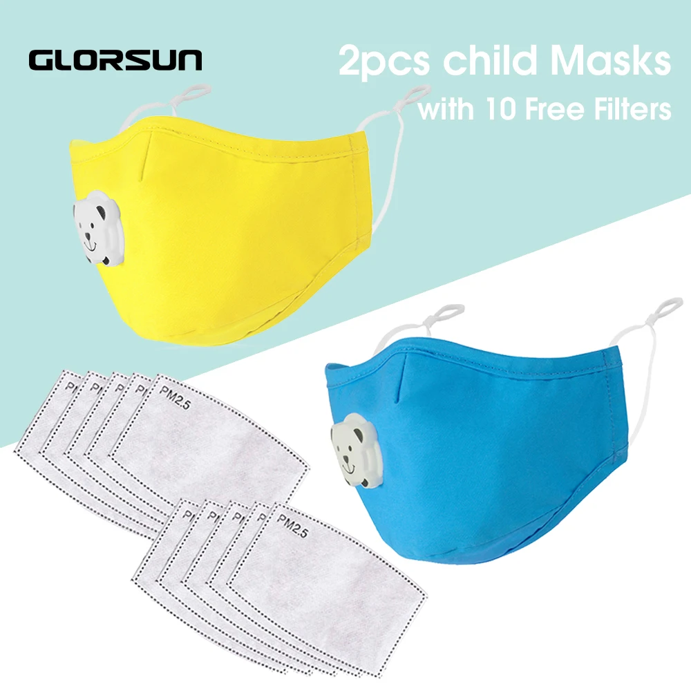 GLORSUN мультяшная детская маска для детей от 3 до 10 лет PM2.5 хлопковая маска с защитой от дымки дыхательный клапан Пылезащитная маска для рта фильтр с активированным углем