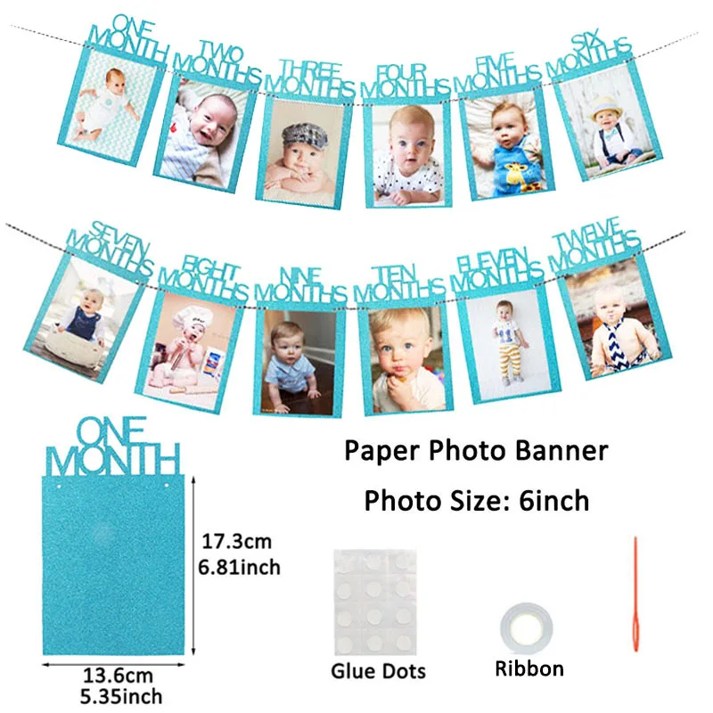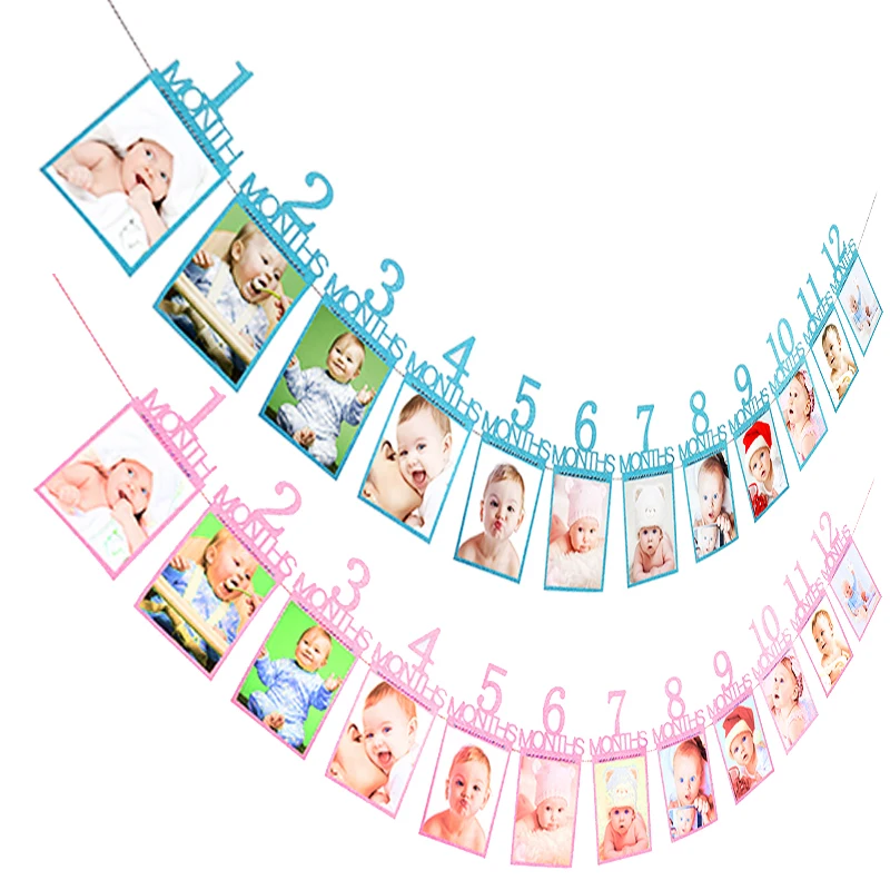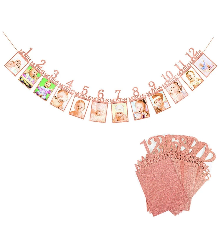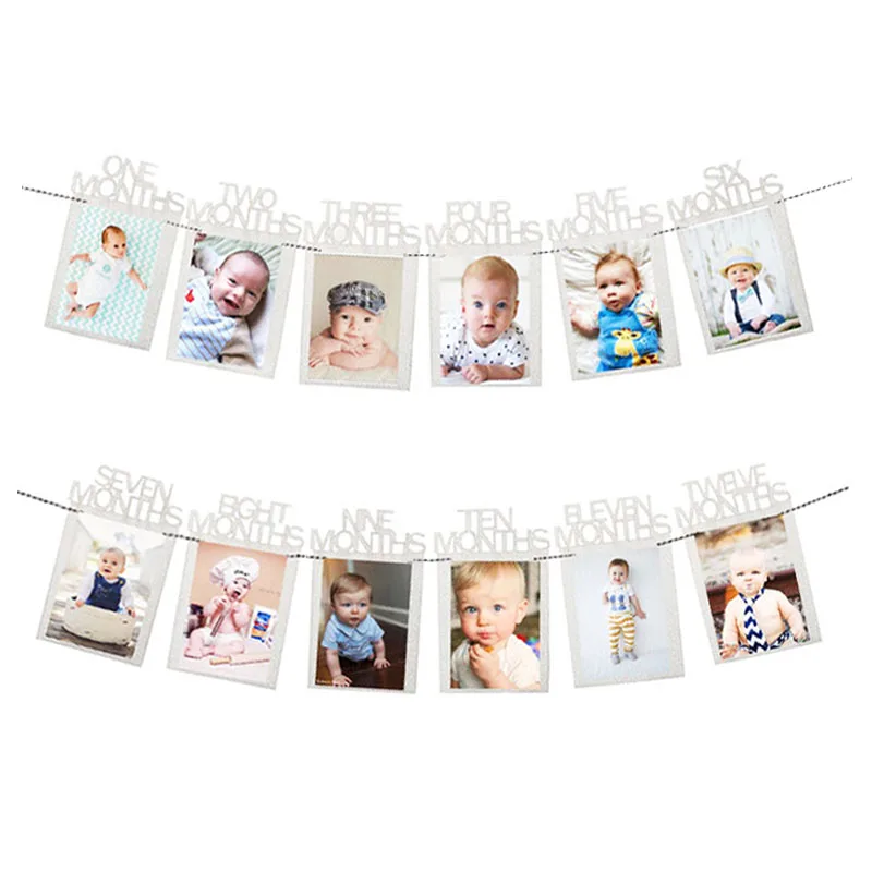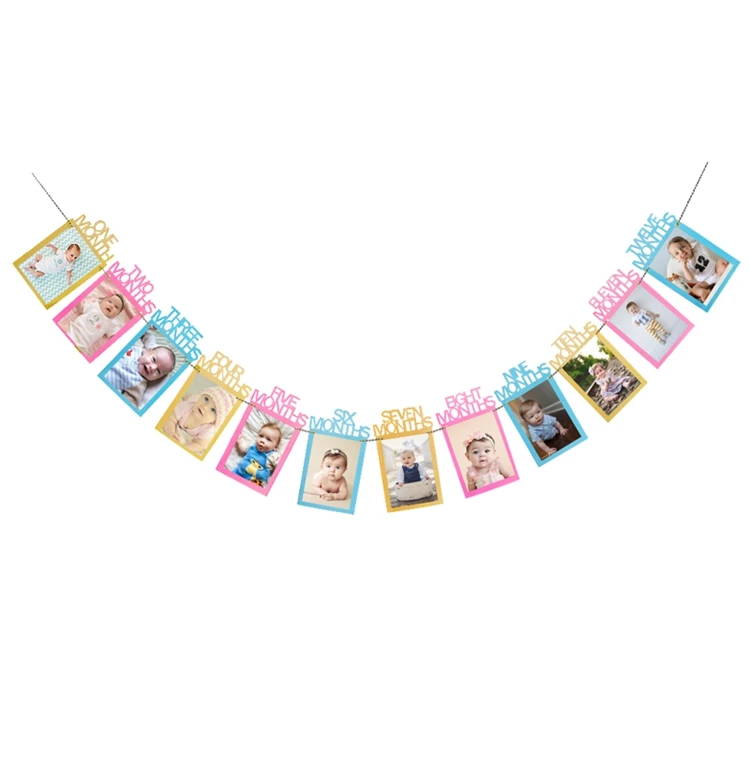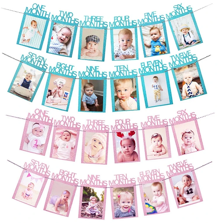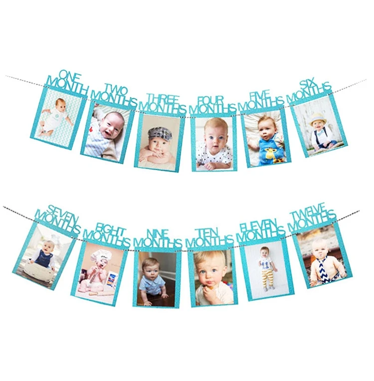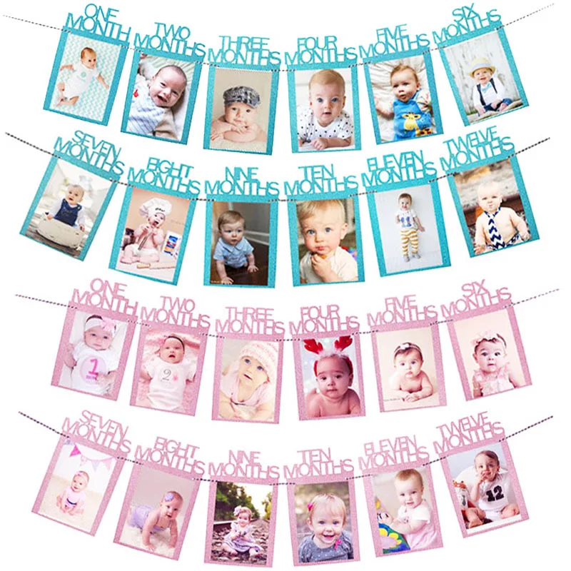 12 месяцы фоторамка баннер на 1-й День рождения украшения первый ребенок мальчик девочка мой 1 год поставки синий розовый серебряный