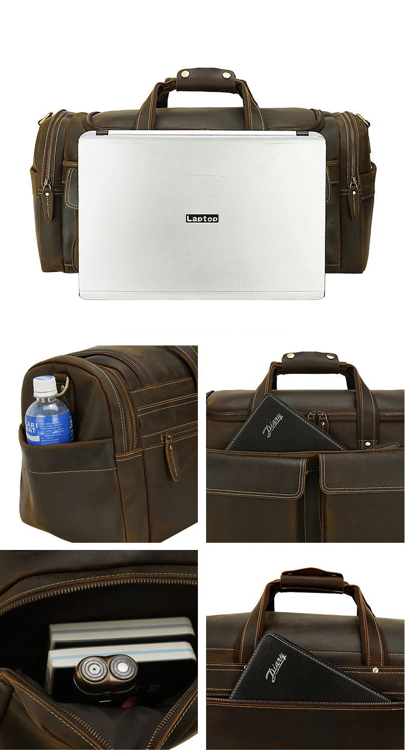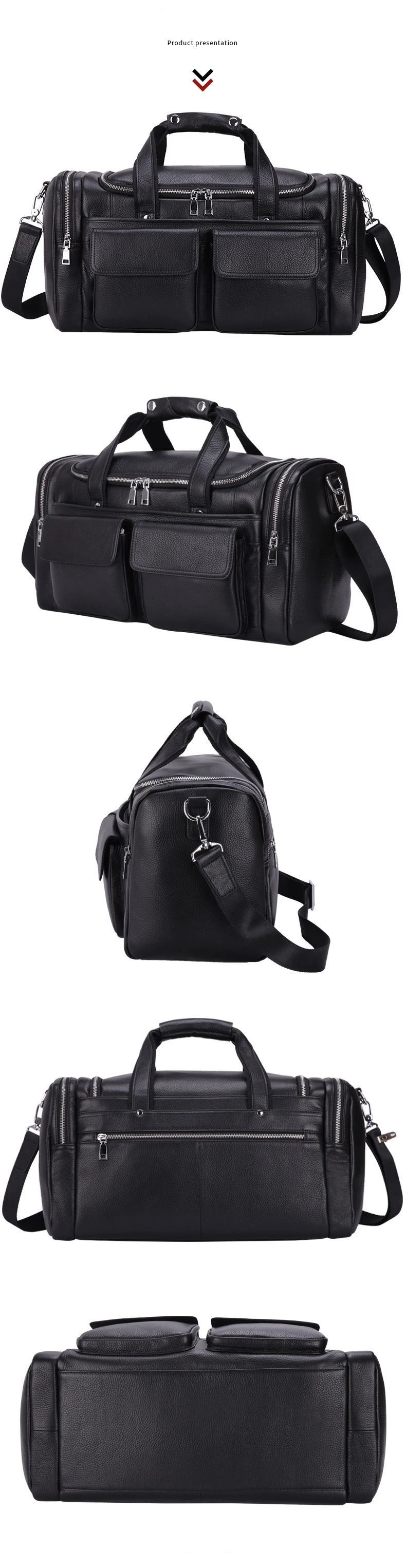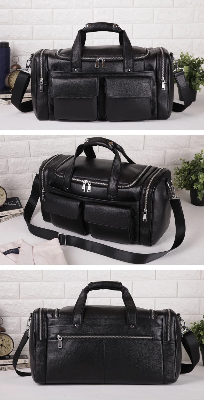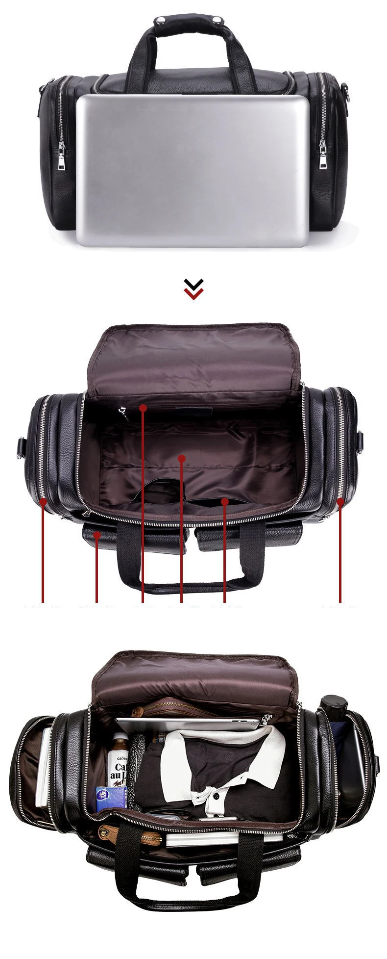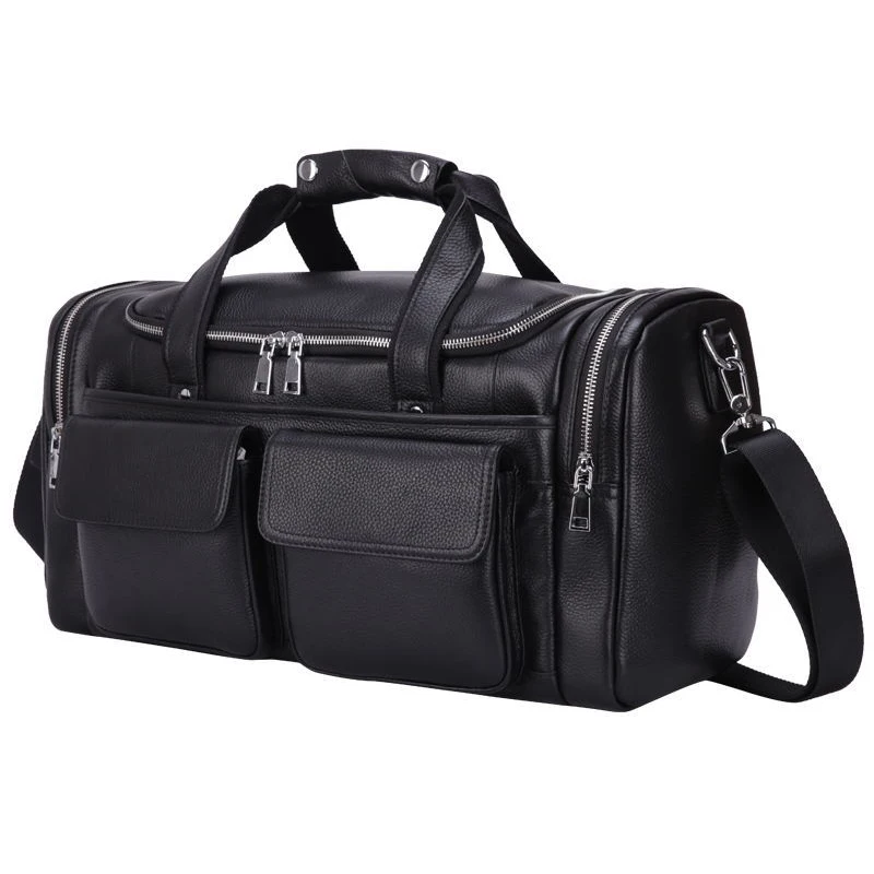 Модная дорожная сумка черного цвета из натуральной кожи, мягкая спортивная сумка из 100% воловьей кожи для ноутбука 17 дюймов, сумка на плечо двойного назначения