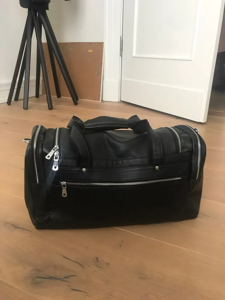 Потрясающе! Очень высокое качество, отличная прострочка и приятный запах кожи. Можно только порекомендовать! Просто убедитесь, что это правильный размер для вас. Я женщина и использую его в качестве сумки для спортзала. Достаточно большой для моих нужд, но он меньше, чем обычные сумки для спортзала.