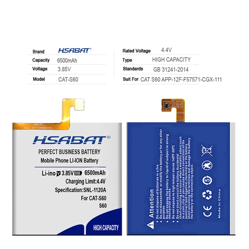 Аккумулятор HSABAT 0 цикл 6500 мАч, аккумулятор высокого качества для Caterpillar CAT S60