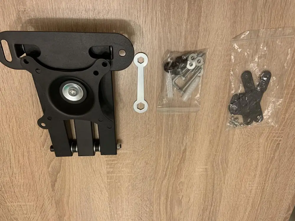 Заказ оплачен 11.11. Выслали 14.11. Уже 17.11 курьером доставили на дом. Упаковано в непрозрачный пакет. Вес посылки 1,2 кг. Внутри уже фирменная коробка. В ней: 1) инструкция, 2) сам кронштейн 3) переходники на веса 200х200 4) комплект крепежа По строению очень похож на Кромакс. Покраска ровная, приятная. Металл визуально толстый. Но современные ТВ уже почти невесомые, так что спокойно выдержит. Ключ комплектный, конечно, фикция))) Очень тонкий. Лучше использовать свой, этот гнется, как пластилин. Из минусов. Пластина крепления к ТВ несъемная, в отличии от Кромаксов. Что несколько затруднит (де)монтаж ТВ. По инструкции сперва нужно крепить ТВ, а потом уже все в сборе к стене. Наклонный механизм неудачный. Он жестко фиксируемые. Сзади шайба, спереди головка шестигранник. То есть с повешенным ТВ уже не получится. Либо надо искать как-то промежуточный момент затяжки, когда ТВ висит крепко, но руками угол все-таки можно менять. В целом цена/качество нормально.