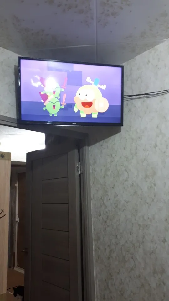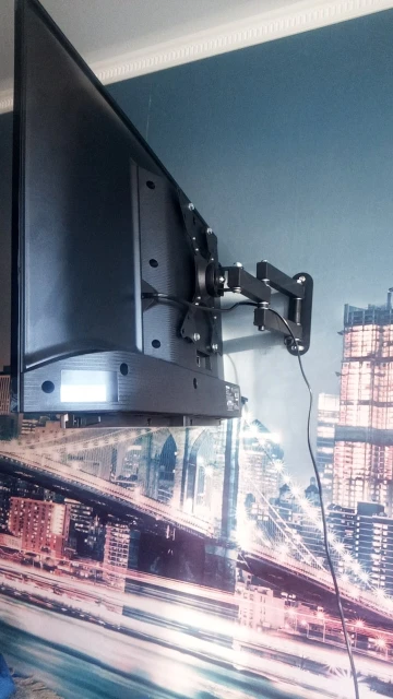 Отличный кронштейн! Крепкий, но большое расстояние от стены! Повесил два телика 32", очень доволен!