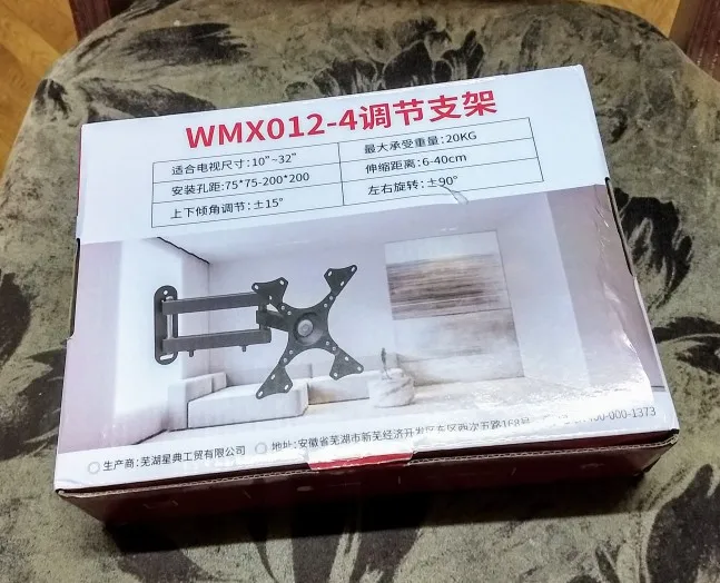 Отличный кронштейн за эти деньги. Пришел в Белгородскую обл, РФ, быстро - за неделю. Телевизор 24" висит отлично. Можно развернуть к стене перпендикулярно, длины кронштейна хватает. Если телик больше - то не хватит длины. Есть небольшой наклон вниз. Но надо сразу регулировать - с телевизором не получится, болт находится с торца, под креплением к телику. Вначале прикрутили кронштейн, потом тв - так удобнее. Продавцу спасибо. Товар рекомендую. У нас немного дороже.