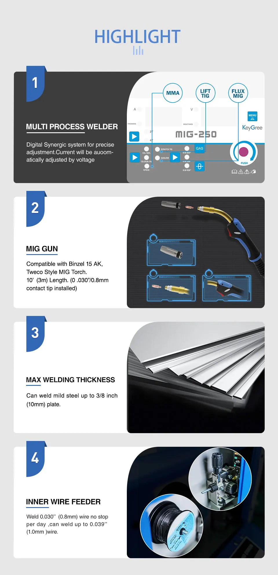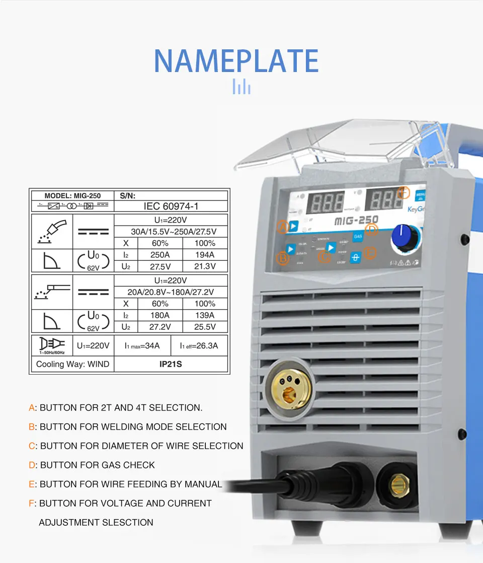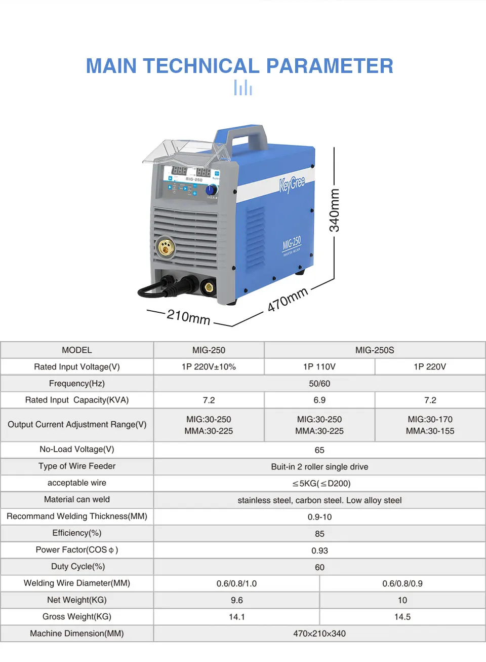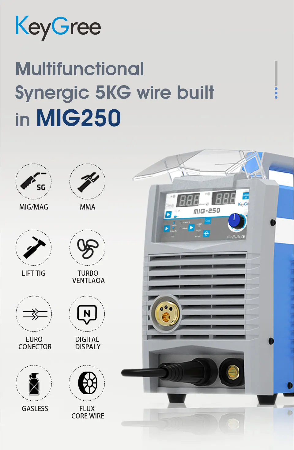 Сварочный аппарат Keygree MIG250A, для бесгазовой и газовой сварки, однофазный сварочный аппарат 220 В