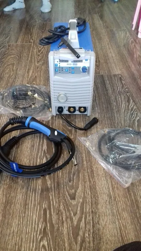 Полуавтомат пришел через 10 дней, быстро. На боковой стороне вмятина. Крышка не открывается. Угол прогнулся. Это какой силы должен был быть удар по корпусу в упаковке, чтобы так прогнуть железо???? На работу не повлияло. Нет кнопки прокрутки проволоки и вместо автомата поставили обычную кнопку выключения. По описании покупала другой аппарат "YESWELDER MIG250A без газа и газа MIG ". Плохо, что нет инструкции на русском языке.