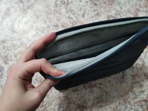 Он мягкий и имеет подкладку som. Собака использовала его уже как подушку. В нем достаточно места для планшета, в него входит ручка. И вы можете хранить остальные вещи в боковой части. Доставка в течение 1 недели