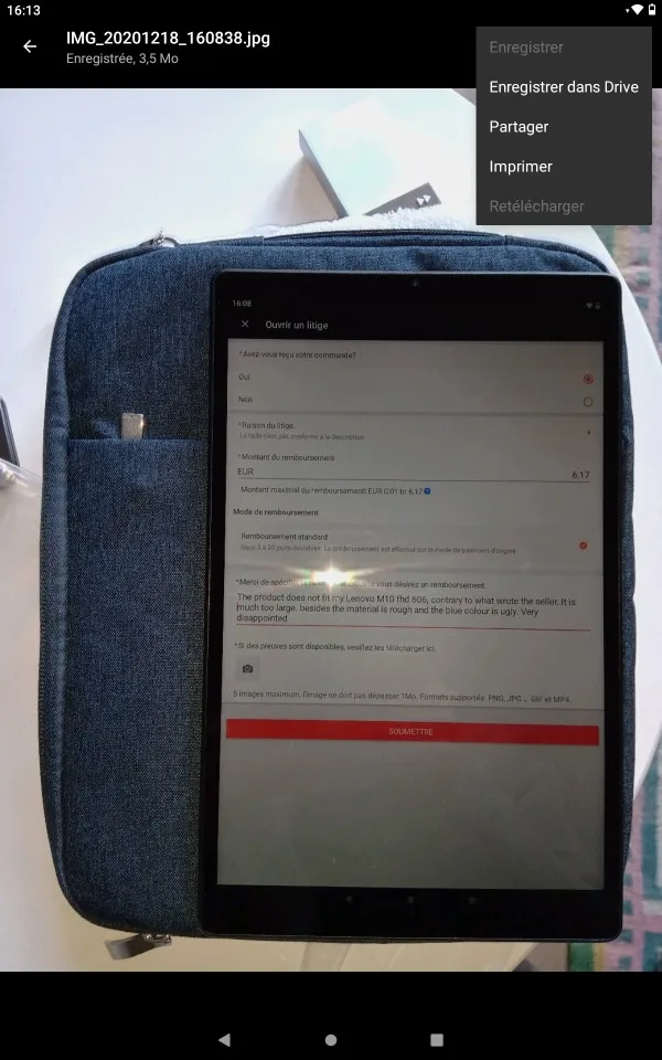 Я не заказал этот предмет, я заказал карман для моего компьютера и получил карман для планшета