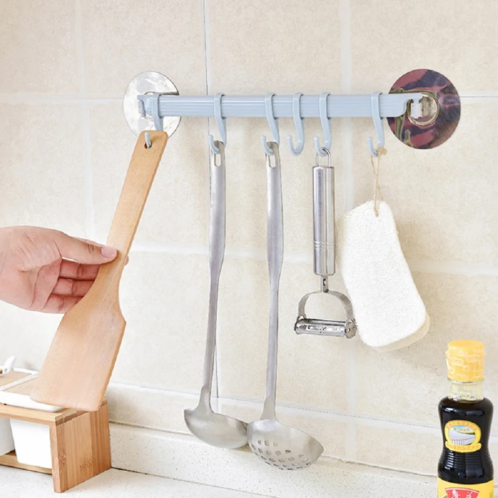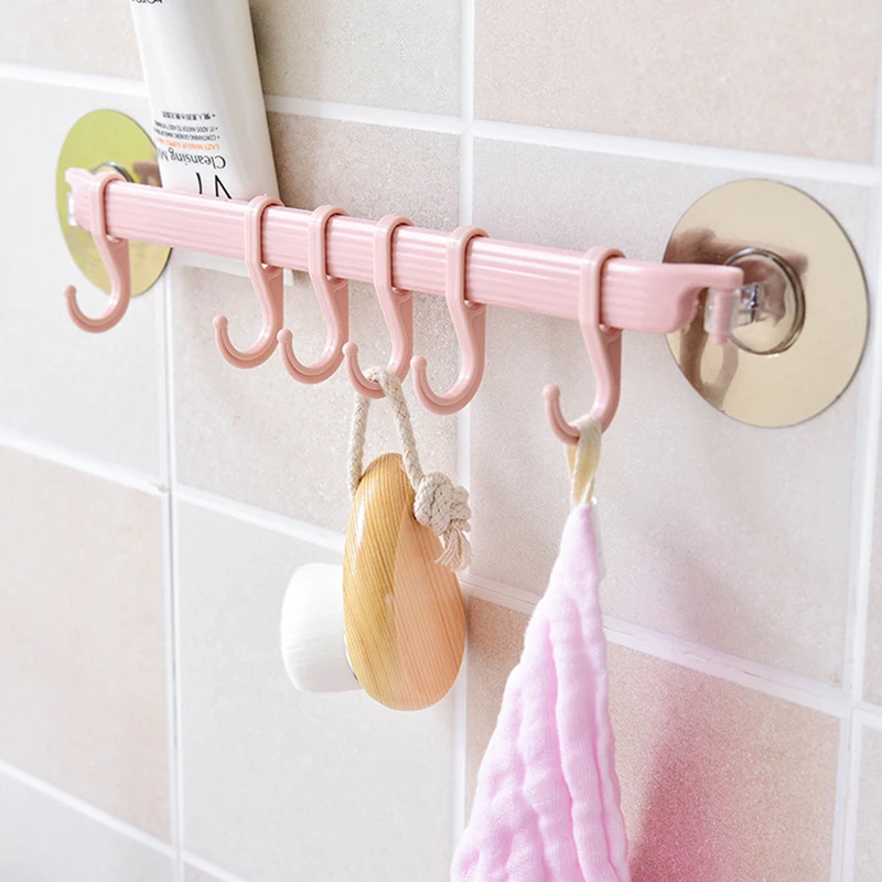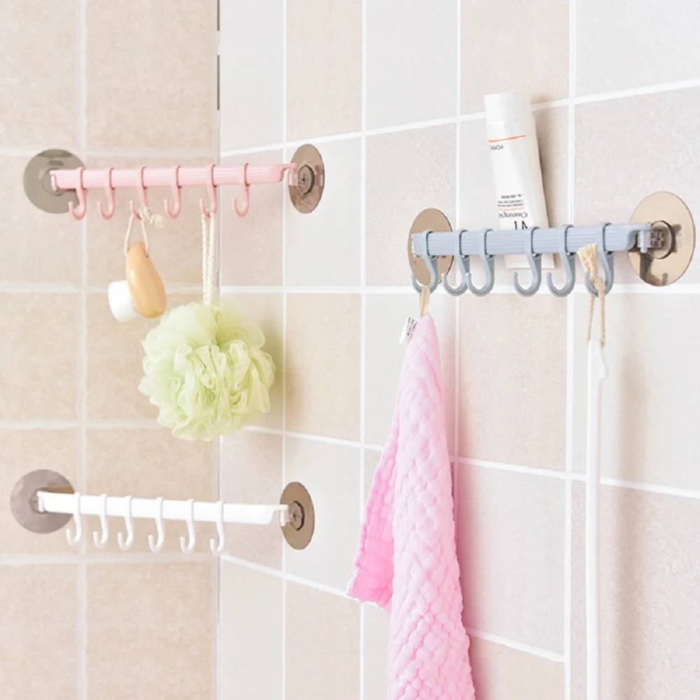 Самоклеящаяся настенная вешалка для полотенец, 6 крючков, крепкие крючки для крепления без гвоздей, крючки для ключей, кухонная вешалка для хранения