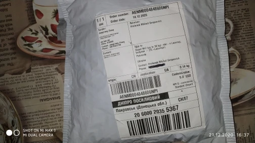 Страна: RU Доставка: Cainiao Super Economy 14.01.2021