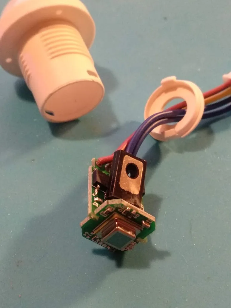 $ 1.54 за 1 шт. Особенно расписывать нечего, внутри обычный датчик света и движения на пониженное напряжение в одно-корпусном исполнении, т.е. он там один, реагирует на тепловое движение и от него же "берется" информация об уровне освещения помещения и заклеив его... При свечении на него вспышкой телефона датчик не включает потребителя (у меня темный коридор и уровня освещения всегда недостаточно для выключения схемы потребителя). Реальный угол срабатывания на тепловое движение 69 градусов (а не 110 заявленные продавцом, видимо при снятом корпусе), что при высоте установки датчика в 2.33 m дает реакцию (на ногу) в 1,6 метра от вертикали установленного датчика. Меня эти показатели устраивают. В режиме ожидания потребляет 0.47W. Выключение при отсутствии движения происходит через 20-21 сек. Кстати можно медленно пройти мимо датчика "не побеспокоив" его :). Продавец спасибо!
