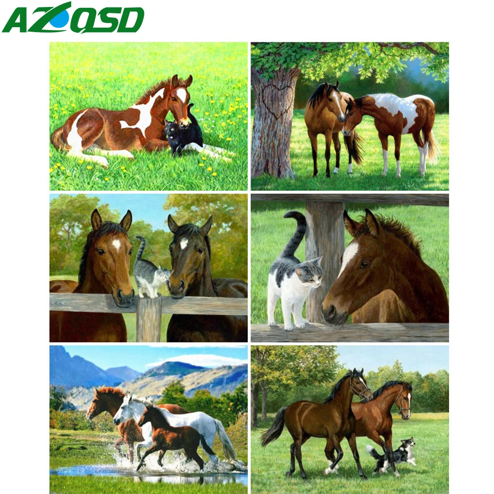 Алмазная вышивка AZQSD, лошади, картины искусственных бриллиантов, животные, полная квадратная мозаика, картина из бисера, подарок