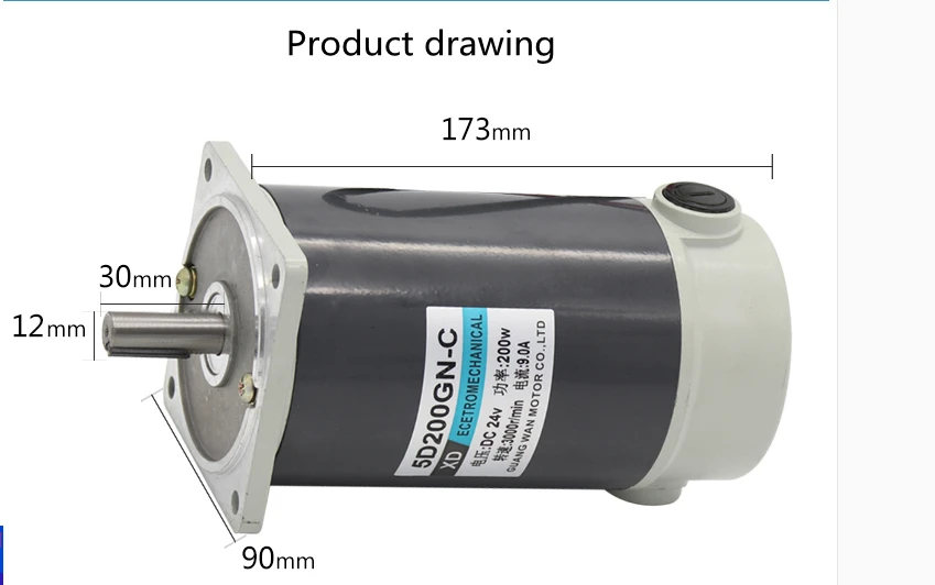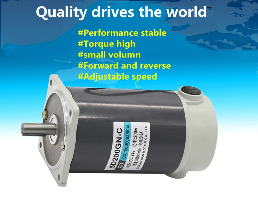 Высокоскоростной регулирующий электродвигатель постоянного тока, 200 Вт, 12 В, 24 В, 1800-3000 обмин, CW CCW