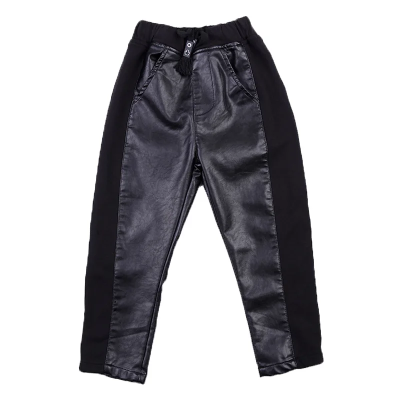 От 4 до 18 лет кожаные штаны для мальчиков Новинка 2021 года, весна-осень, повседневные модные штаны с эластичной резинкой на талии для мальчиков черные штаны высокого качества