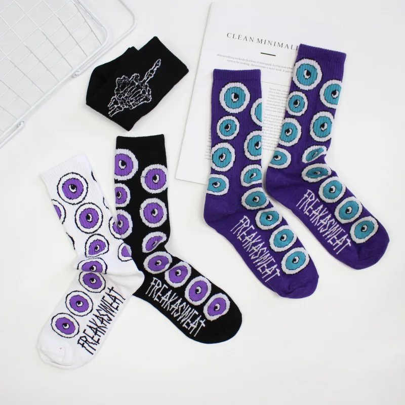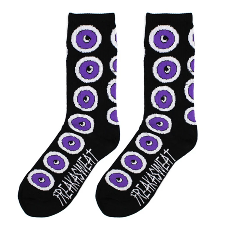 Забавные носки в японском стиле Харадзюку уличные буквы фиолетовые Глазные яблоки Брендовые мужские и женские носки на весну и осень-зиму