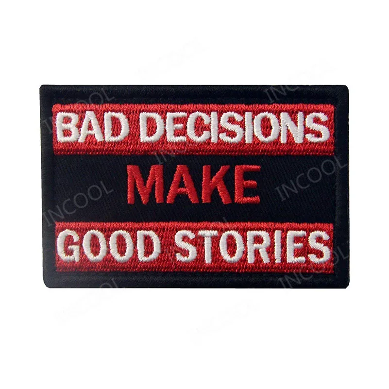 [Спецификация]:Плохие решения, хорошие истории, нашивка с 3D вышивкой, военные нашивки, тактическая Боевая эмблема, Аппликации, вышитые значки