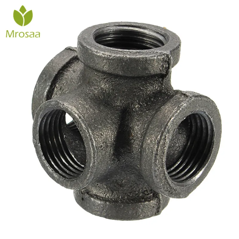 1 шт., 12 дюйма, 34 дюйма, 1 дюйма, 5 каналов, фитинг для труб из ковкого железа, черный выходной поперечный гнездовой соединитель для соединения с наружными трубами