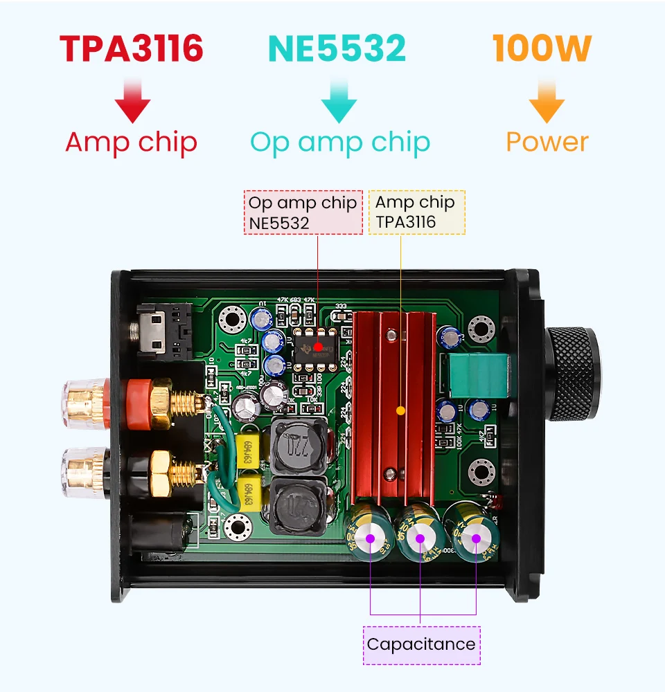 AIYIMA TPA3116 100 Вт Сабвуферный аудио усилитель TPA3116D2 моно Цифровые усилители мощности, усилитель с операционным усилителем NE5532