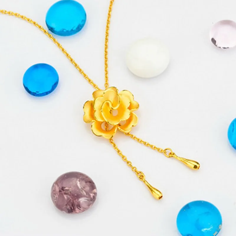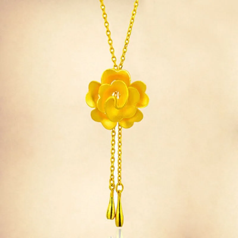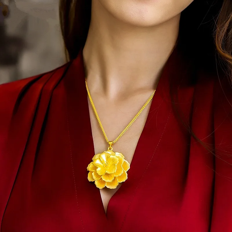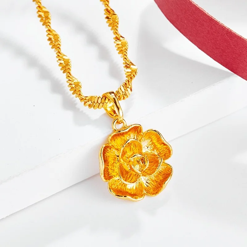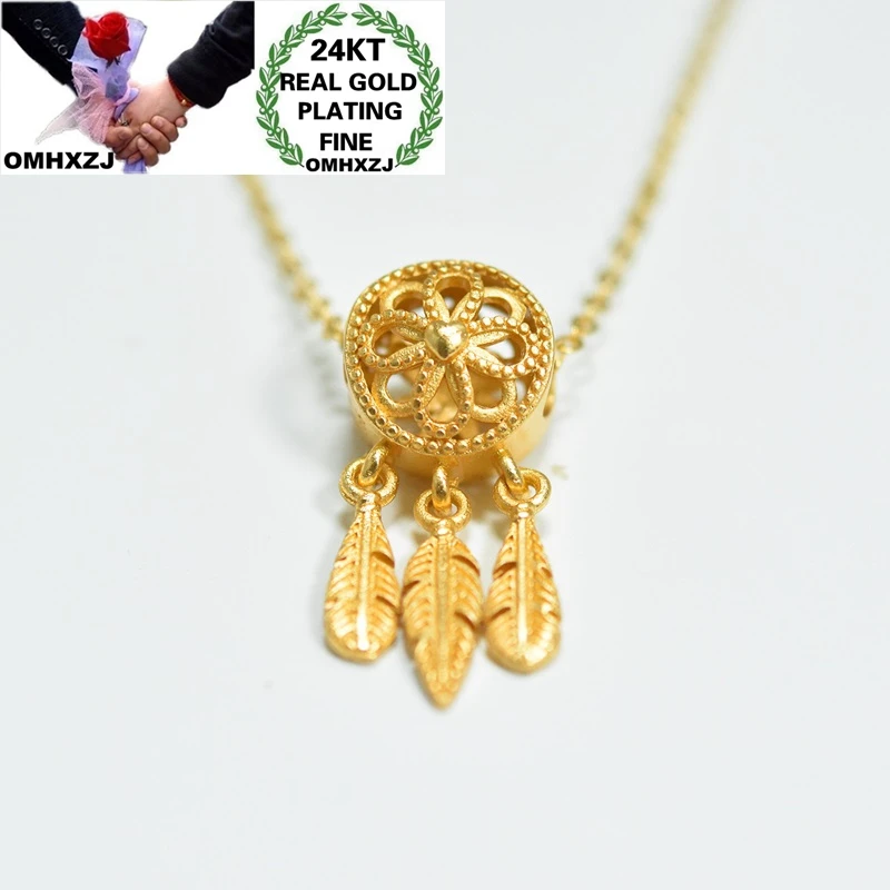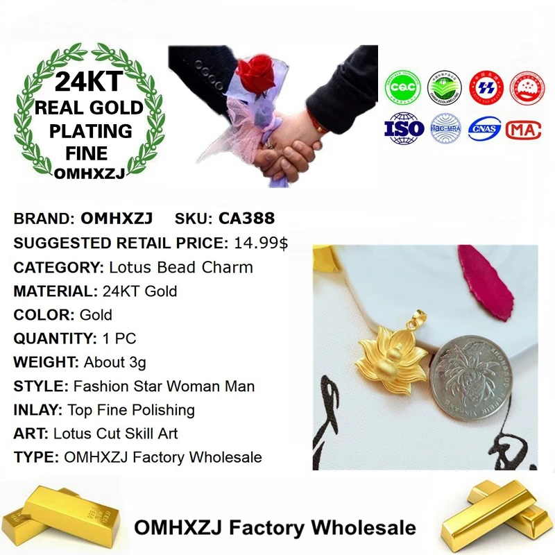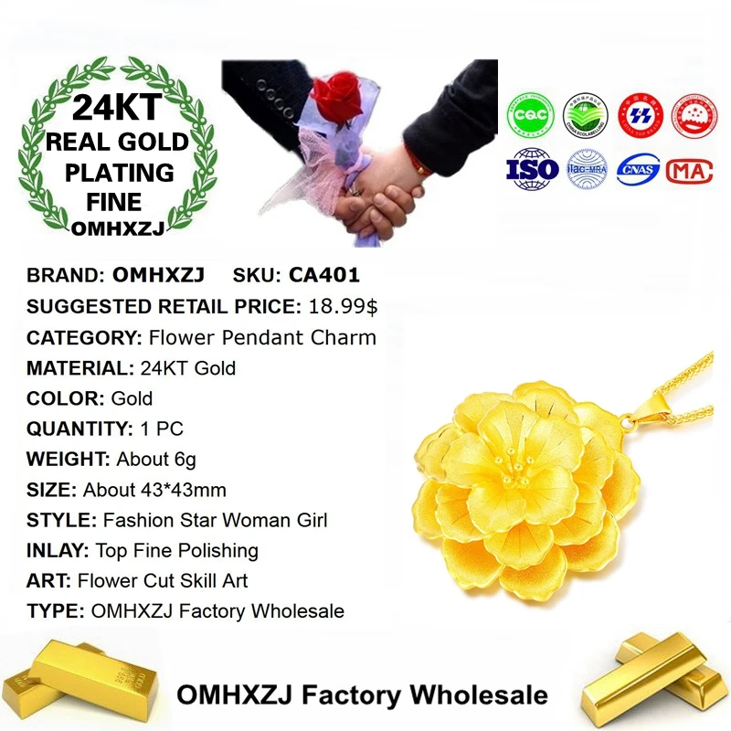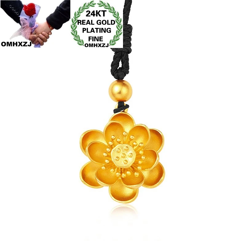 OMHXFC Оптовая Европейская мода Женская вечевечерние НКА день рождения свадебный подарок полый круглый цветок 24KT настоящий золотой очаровательный кулон PN142