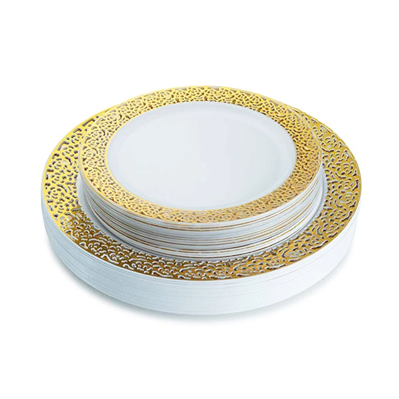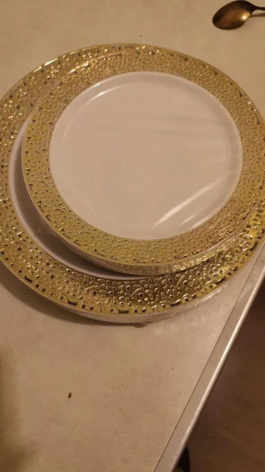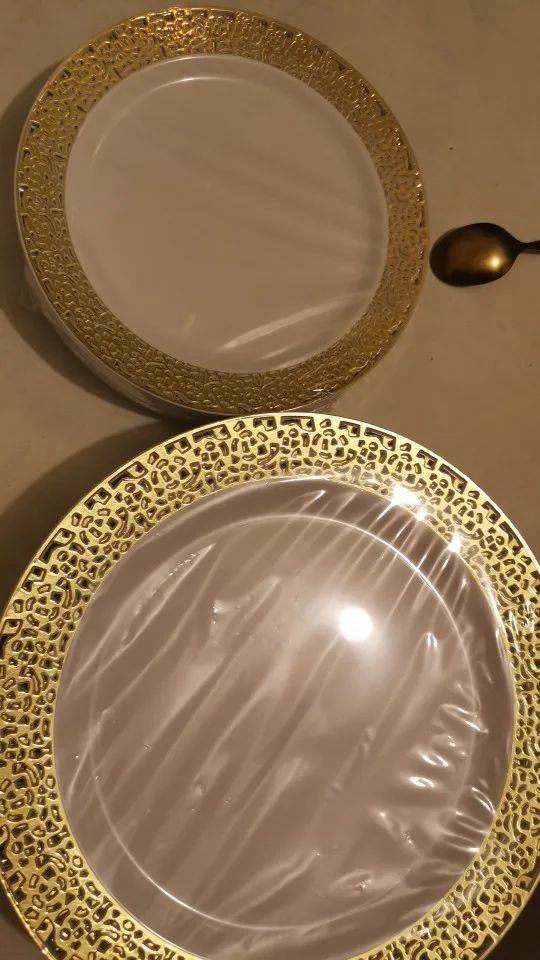 25 упаковок золотых кружевных пластиковых тарелок для свадебной вечеринки, Необычные тарелки для салатов и искусства для всех праздников и повода