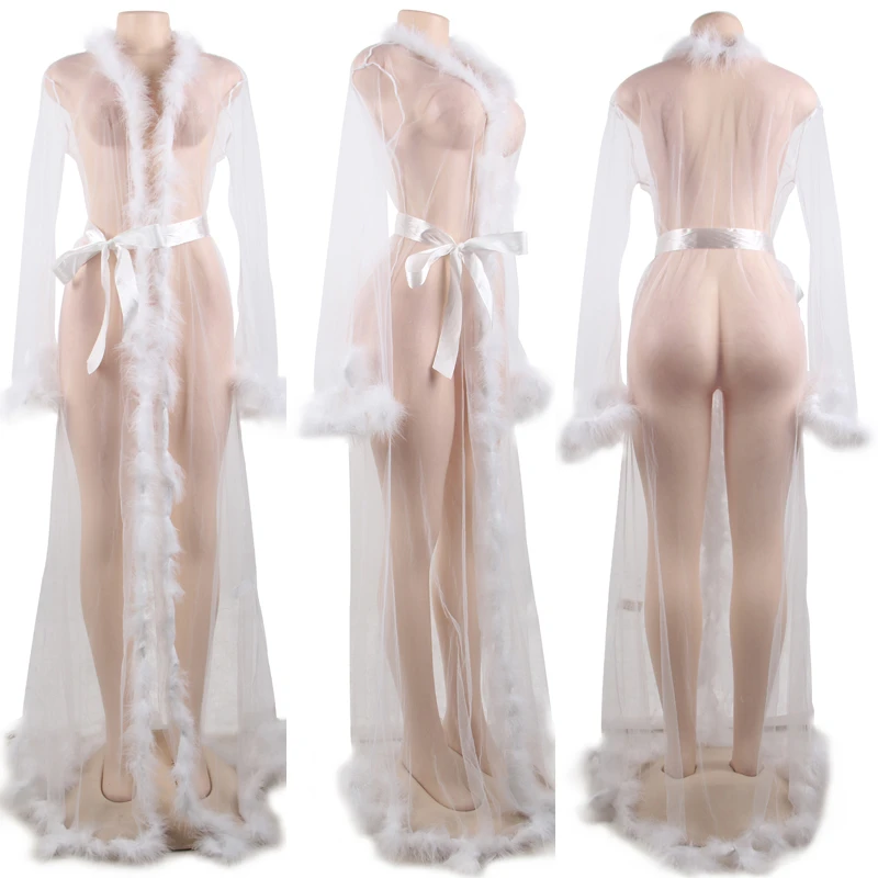 Длинное шифоновая ночная рубашка женское белье, меховой халат, проз...