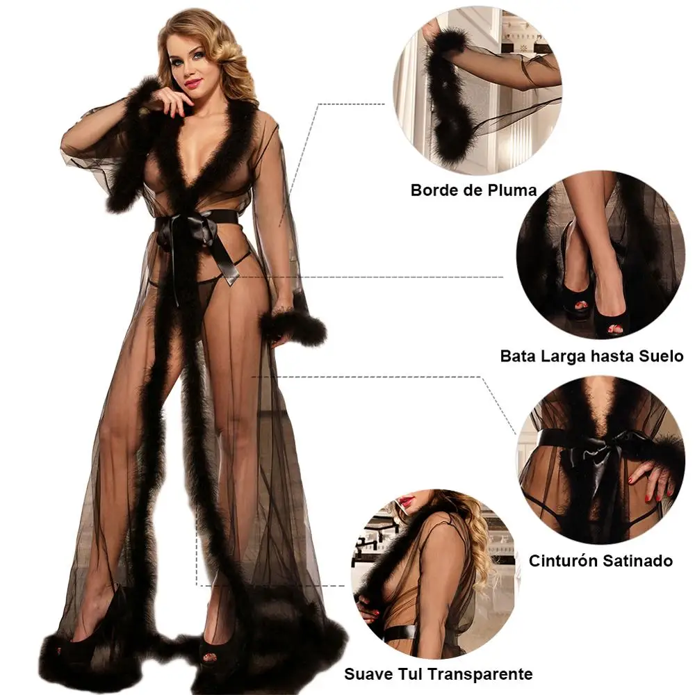 Сексуальное кружевное нижнее белье, халат, длинная прозрачная Пижам...
