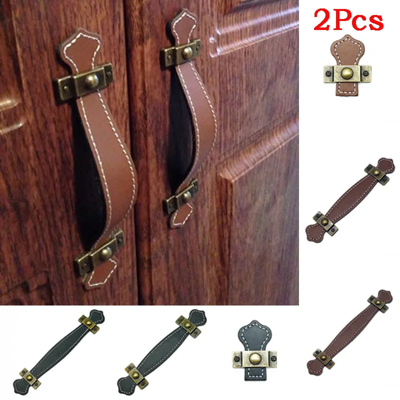 Ручки для шкафа в стиле ретро, кожаная фурнитура для двери, мебельные ручки, ящики, аксессуары для шкафа, 5 стилей