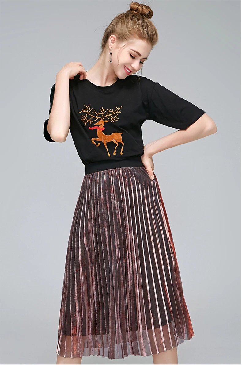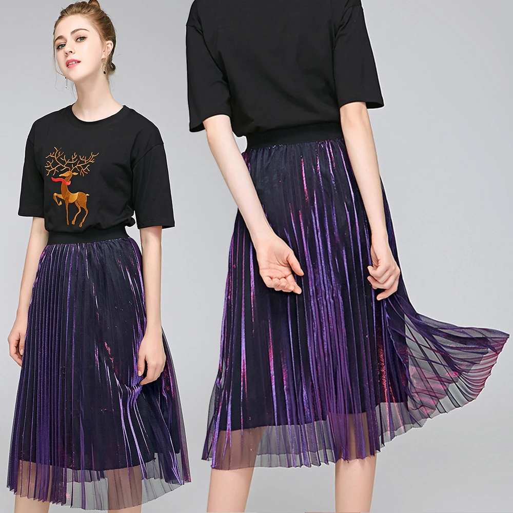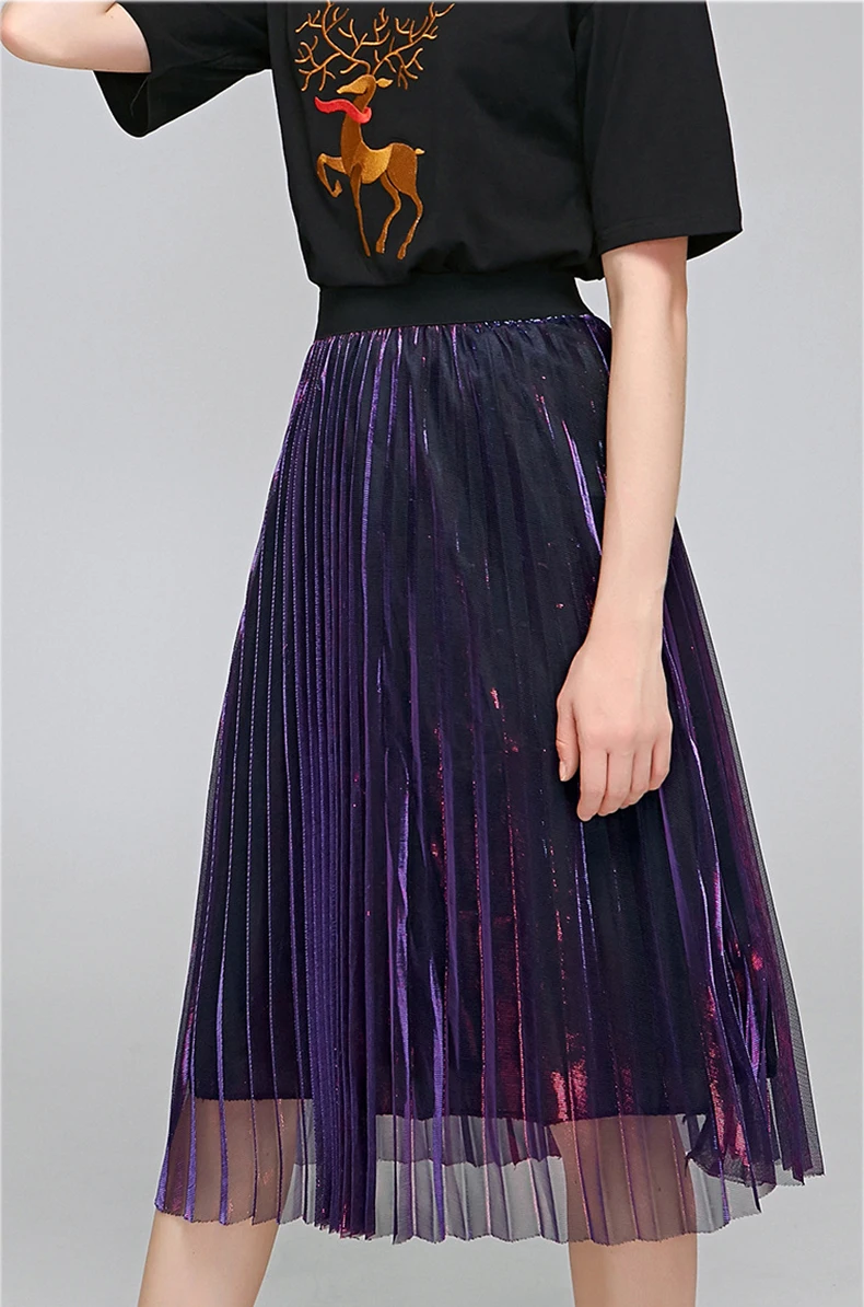 Женская плиссированная юбка, Однотонная юбка с эластичной завышенной талией, градиентной расцветки, для вечеринок, на лето, 2019