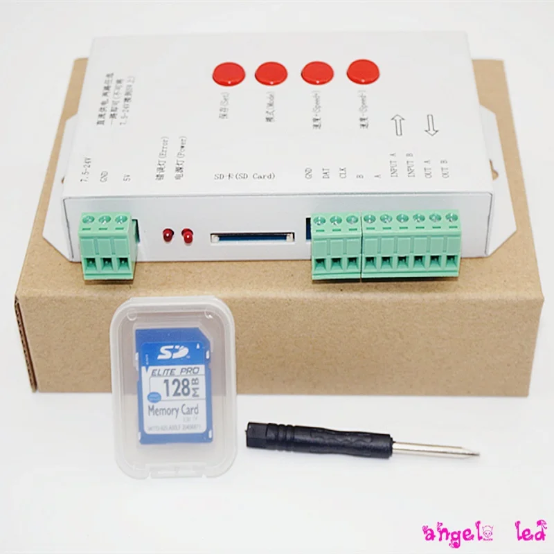 Контроллер T1000S DMX 512 RGB, SD-карта T1000S WS2801 WS2811 WS2812B LPD6803, светодиодная подсветодиодный ка, 2048 пикселей, 5 24 В постоянного тока, бесплатная доставка