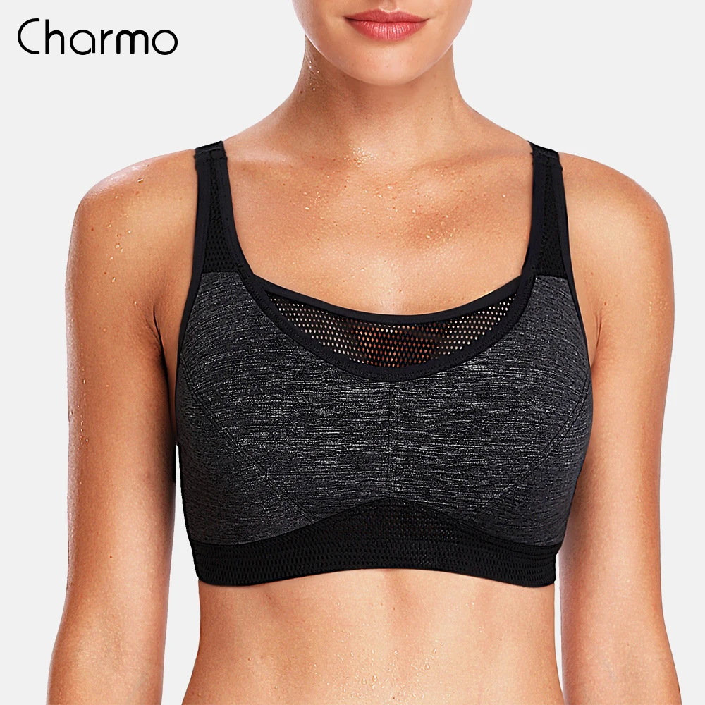 Спортивный женский бюстгальтер Charmo, с мягкой подкладкой, для йоги, сетчатый дышащий, для фитнеса, тренировок, спортивный топ против пота