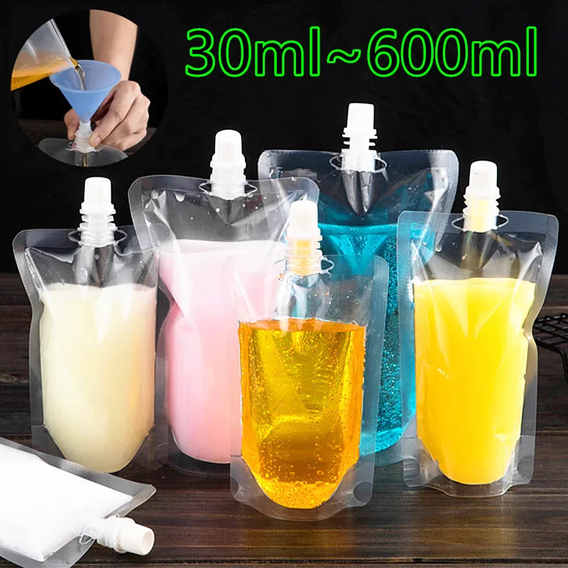 Прозрачные пакеты с носиком для напитков, пластиковые пакеты с носиком для вечерние НКИ, свадьбы, фруктового сока, пива с воронками, 100 шт., 30 мл 600 мл