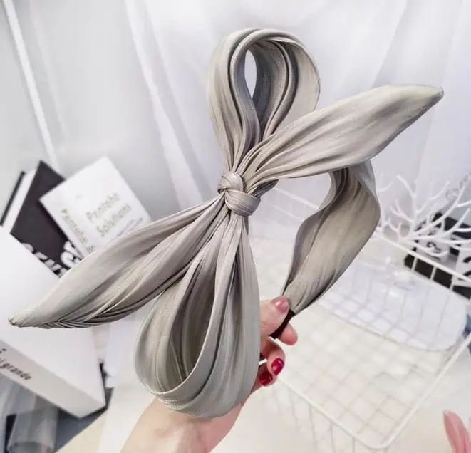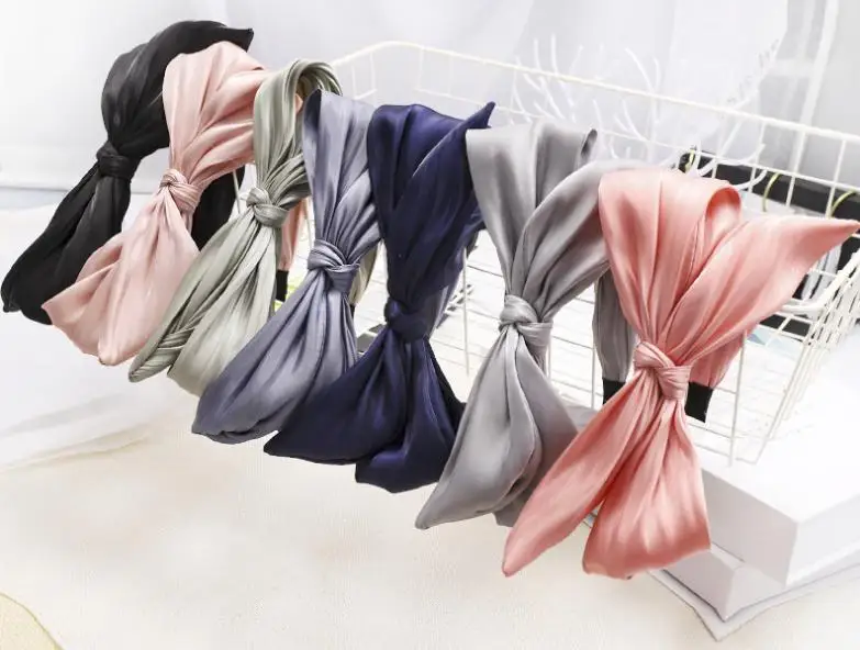 Большой бант для волос повязка на голову для Для женщин Головные уборы однотонного полотна Сложите штаны повязка на голову с бантом, одежда для девочек милый бант для головы Band для взрослых, повязка на голову с бантом