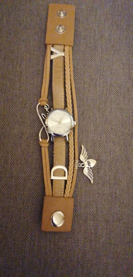 Описанию соответствует, как на фото часики, может чуть темнее ремешки, цвета кофе с молоком, красивый оттенок, выглядят здорово. Размер браслета на худенькую руку, где-то до 17-18см не больше, у меня 15см сели хорошо. Пришли за месяц. Защита стекла порадовала, всё целое. Спасибо!