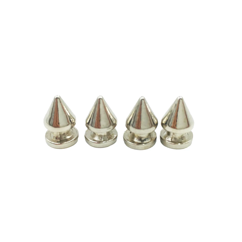 Эти шипы могут быть применены к большинству материалов, таких как кожа и деним, путем крепления шипа к винту.