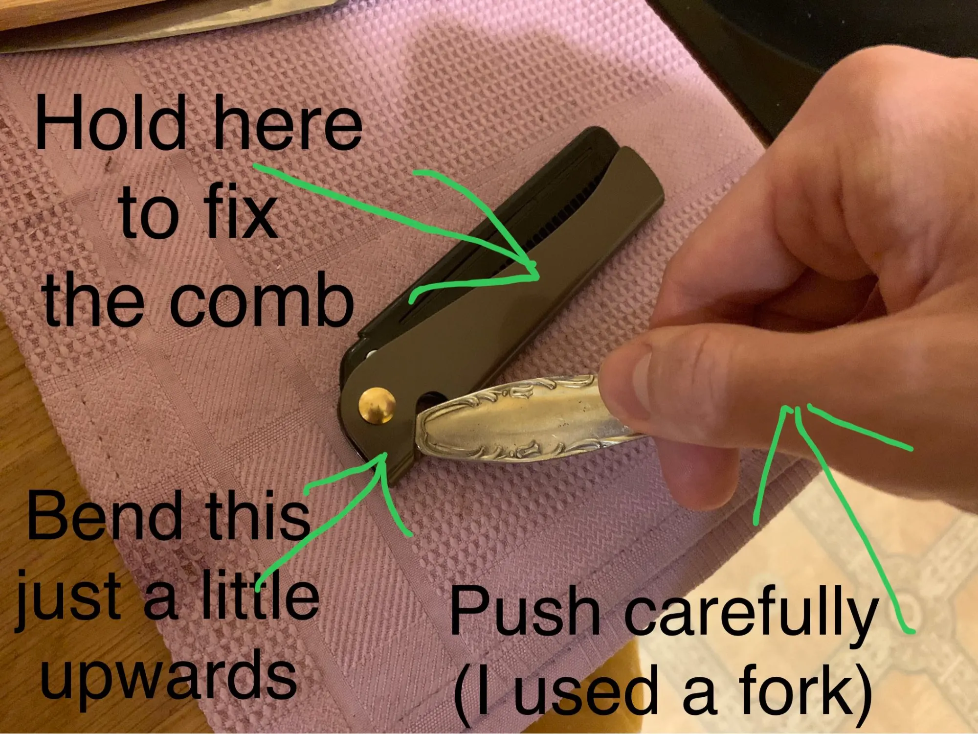 Хорошая расческа, выглядит и ощущается прочно. материалы не скажу что дешёвые, складывается и раскладывается туговато по началу, но так лучше, чтобы не выпадала. в целом компактное решение, легко закинуть в карман и носить, не мешается. минусов не вижу.