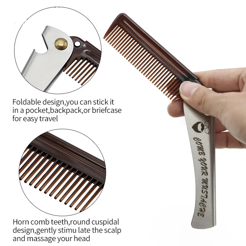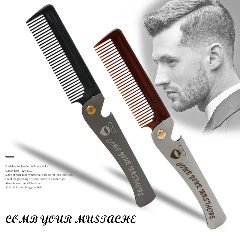 Расческа Мужская Складная карманная с металлической ручкой, для распутывания зубов, 1 шт., нож с расческой форма