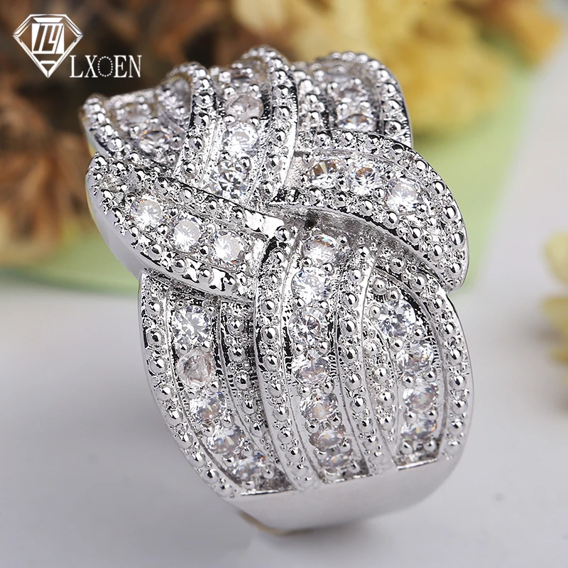 LXOEN Роскошные в форме узла циркониевые кольца для женщин серебряного цвета обручальное кольцо ювелирные изделия аксессуары anillos mujer anel bague