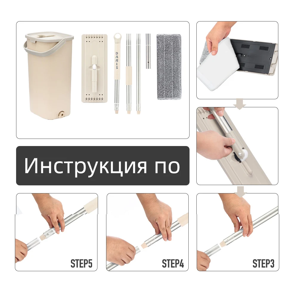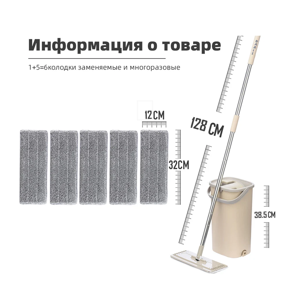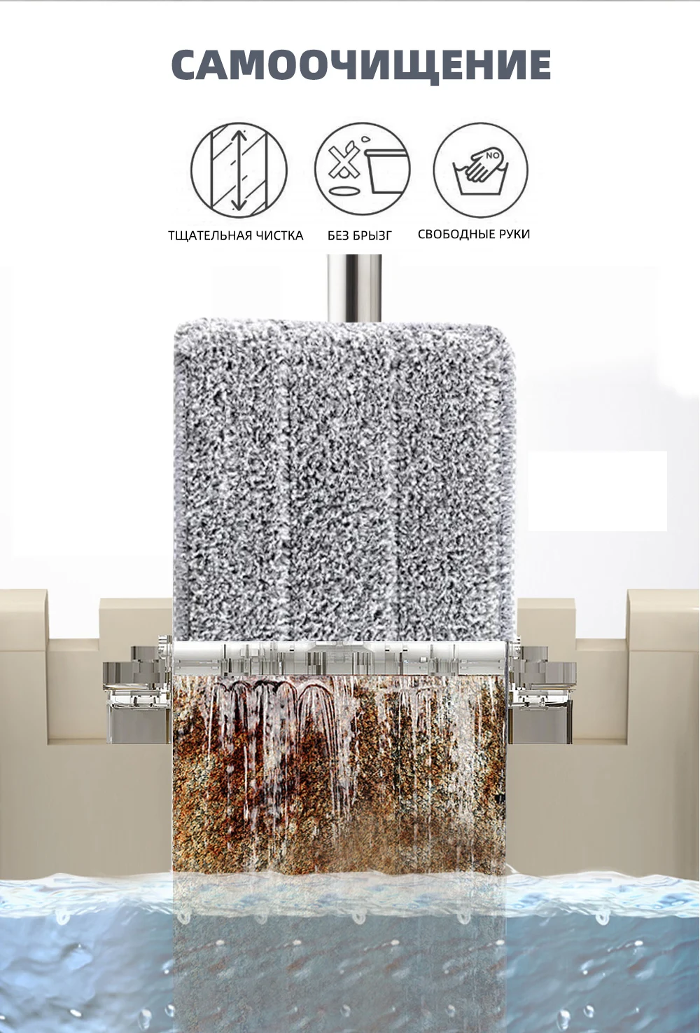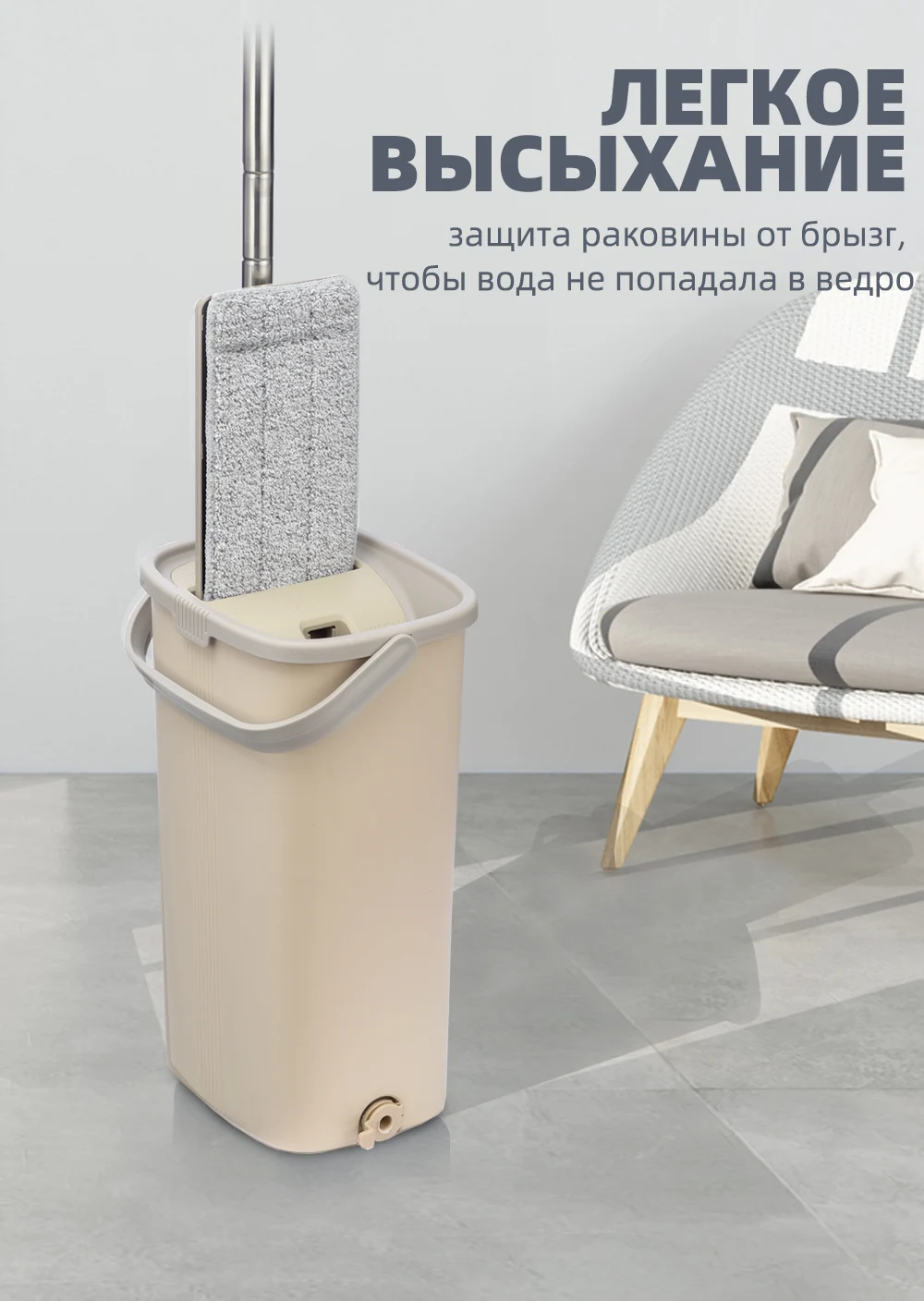 Умная плоская швабра с ведром для сухой или влажной уборки с отжимом для домашней кухни, швабра микрофибра для очистки пола с системой самоочистки