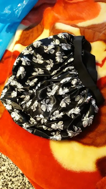 Новая женская шапочка большого размера с красивым принтом, атласное шелковое, шапочка для сна, шляпа для вьющихся волос, Черная